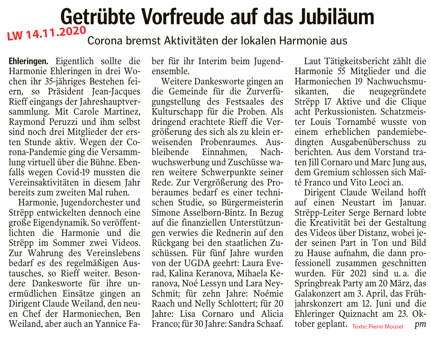 Pressebericht Luxemburger Wort Generalversammlung 2020